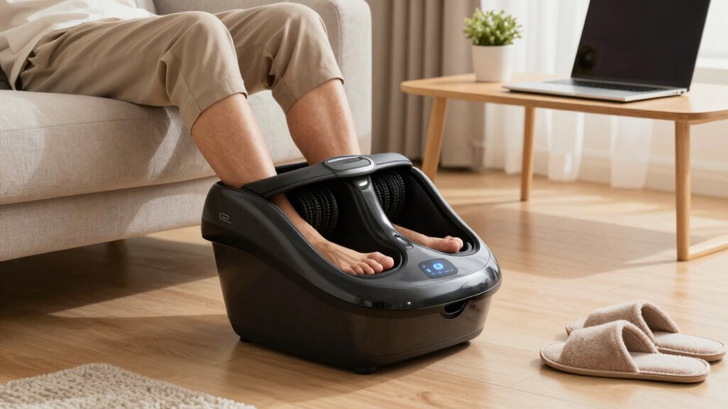 After exploring these top foot massagers, I can’t help but wonder—aren’t our hardworking feet worth a little extra care? Whether it’s soothing neuropathy, easing plantar fasciitis, or just unwinding after long hours, these devices can make a real difference. Imagine slipping into comfort and relief at the end of each day—sounds like a small luxury that could truly transform your work routine, doesn’t it? Your feet deserve it!