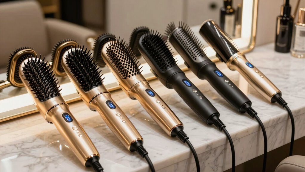 Since thick hair can be resistant to styling and prone to heat damage, having multiple heat control options on a luxury multi styler is essential. Precise temperature adjustments allow me to style effectively without risking unnecessary damage. Adjustable heat settings help me tailor the heat to different textures, from fine to coarse, ensuring the best results every time. Some stylers even offer temperature ranges below 250°F, which is perfect for protecting hair while still delivering style. Consistent heat regulation across multiple levels helps maintain my hair’s health, boosting shine and smoothness. The ability to switch between high heat for styling and lower heat for finishing or touch-ups makes these stylers versatile and gentle, giving me confidence in both performance and hair care.