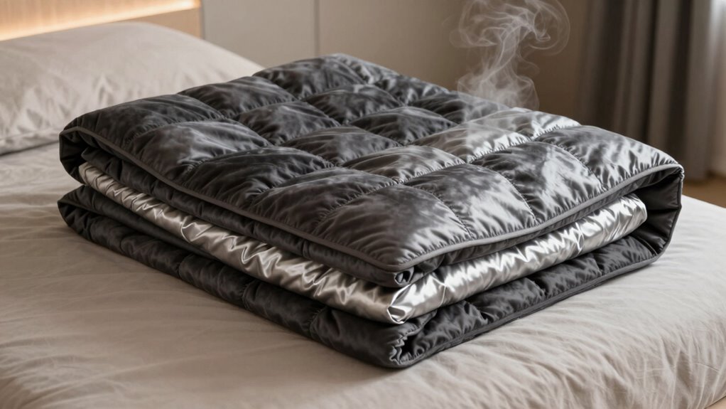 When selecting a luxury sauna blanket with a layered design, I look closely at the quality of the layering materials to guarantee durability and comfort. I also consider the temperature range and safety features like overheat protection to keep my experience safe and effective. Finally, I prioritize ease of use, portability, and storage options to fit the blanket seamlessly into my routine.