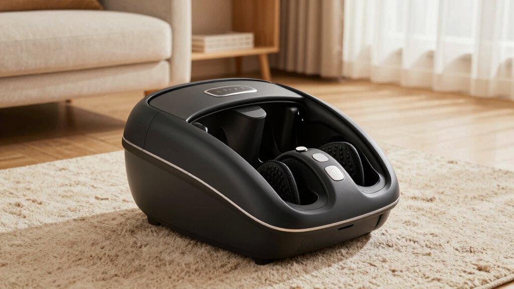 You should avoid using a foot massager if you have foot injuries, as there’s a significant foot injury caution. Using massage therapy benefits can be helpful, but only when your injuries are healed or under medical supervision. Applying massage to injured areas might worsen your condition. Always consult with a healthcare professional before using a foot massager if you’ve experienced foot injuries, to guarantee safety and proper recovery.