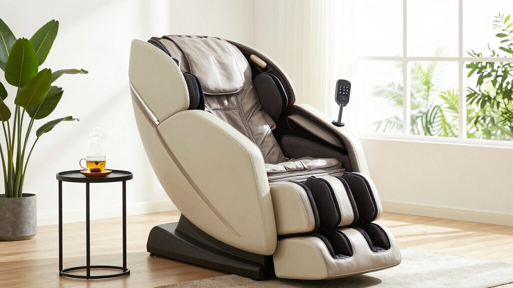 Ever wondered how to pick the perfect massage chair for your needs? Start by considering personalized settings that target your specific areas of tension. Think about your budget considerations—there are options for every price point. Look for features that match your wellness goals, like kneading, rolling, or heat therapy. Test different models if possible, and read reviews to guarantee comfort and effectiveness. This way, you’ll find a chair that truly supports your well-being.
