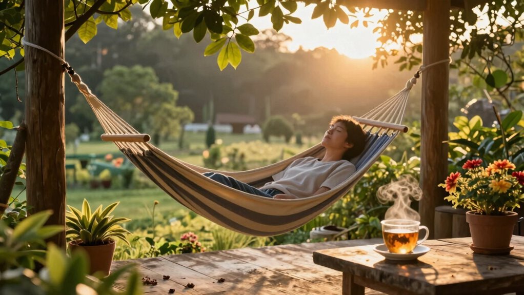 Creating a relaxation routine that fits your lifestyle can considerably reduce daily stress and boost your overall well-being. To develop effective, personalized routines, focus on what relaxes you most. Track your progress to see what activities work best and adjust accordingly. Consistency is key; even short, daily practices make a difference. Incorporate activities like meditation, deep breathing, or gentle stretching. Use the table below to explore options and tailor your routine: